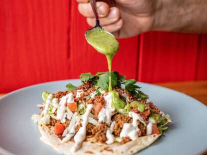 As a healthier alternative to Mexican or Spanish rice, this version uses gluten-free quinoa instead of rice for its additional protein and fiber and great taste. However, it still has all the great flavor and spices of your usual Mexican or Spanish rice dish.Ingredients | Mexican Food Places1 tablespoon olive oil1 cup quinoa, rinsed1 small onion, chopped2 cloves garlic, minced1 jalapeno pepper, seeded and chopped (Optional)1 (10 ounce) can diced tomatoes with green chile peppers (such as RO*TEL®)1 envelope gluten-free taco seasoning mix2 cups low-sodium chicken broth¼ cup chopped fresh cilantroDirectionsHeat olive oil in a large skillet over medium heat; cook and stir quinoa and onion in the hot oil until onion is translucent, about 5 minutes. Add garlic and jalapeno pepper to quinoa mixture and cook until garlic is fragrant and slightly softened, 1 or 2 more minutes.Mix undrained can of diced tomatoes with green chiles, taco seasoning mix, and chicken broth into quinoa mixture. Bring to a boil, reduce heat to medium-low, and simmer until liquid has been absorbed, 15 to 20 minutes. Stir in cilantro.Info | Mexican Food Placesprep: 20 mins cook: 20 mins total: 40 mins Servings: 4 Yield: 4 servings